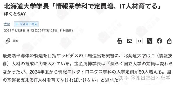 据日本经济新闻3月报道:北海道大学从2024年度开始,情報エレクトロニクス学科(信息电子研究科)的入学定员将增加50人。