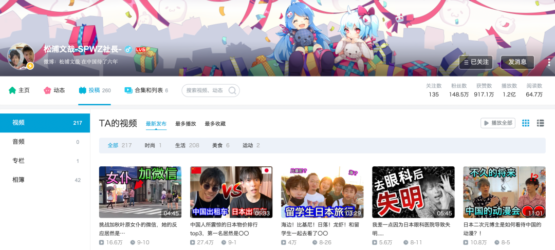 松浦文哉 bilibili个人主页