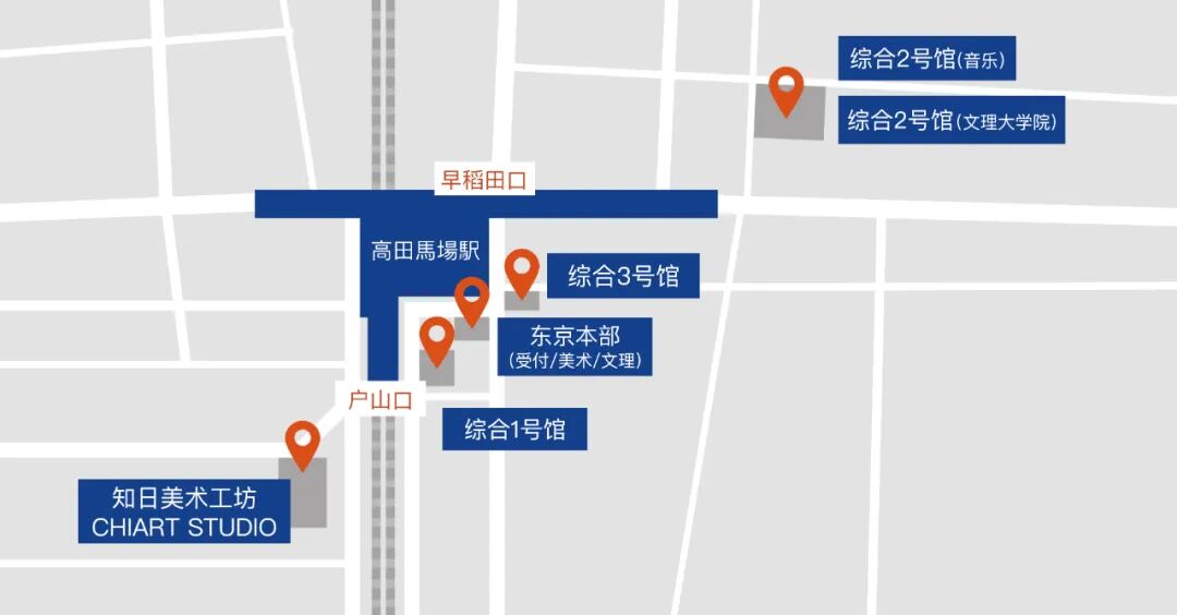 校区都围绕着高田马场车站,出站后步行1分钟即可到达知日塾↓