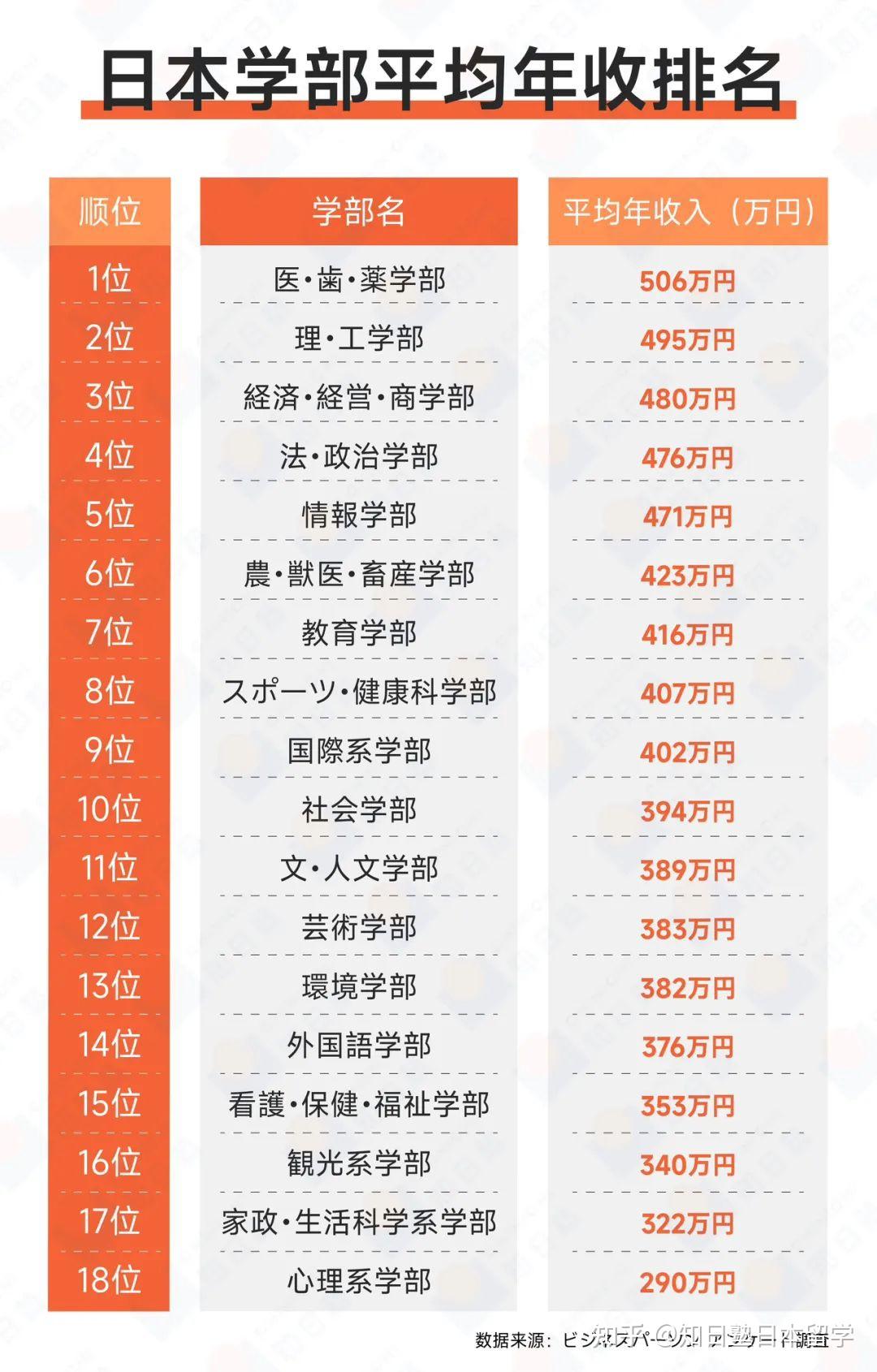 知日派|日本大学平均年收入TOP10的学部