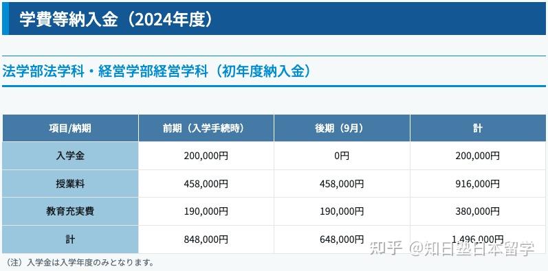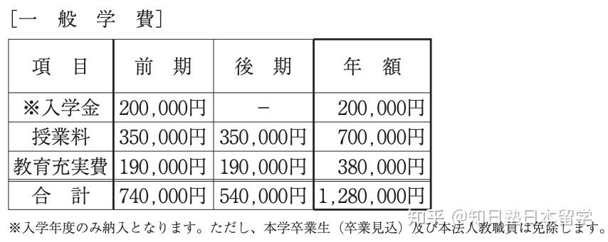 山梨学院大学一年的授课费如下图所示,该校对符合条件的留学生的入学金有20%~50%的减免政策。