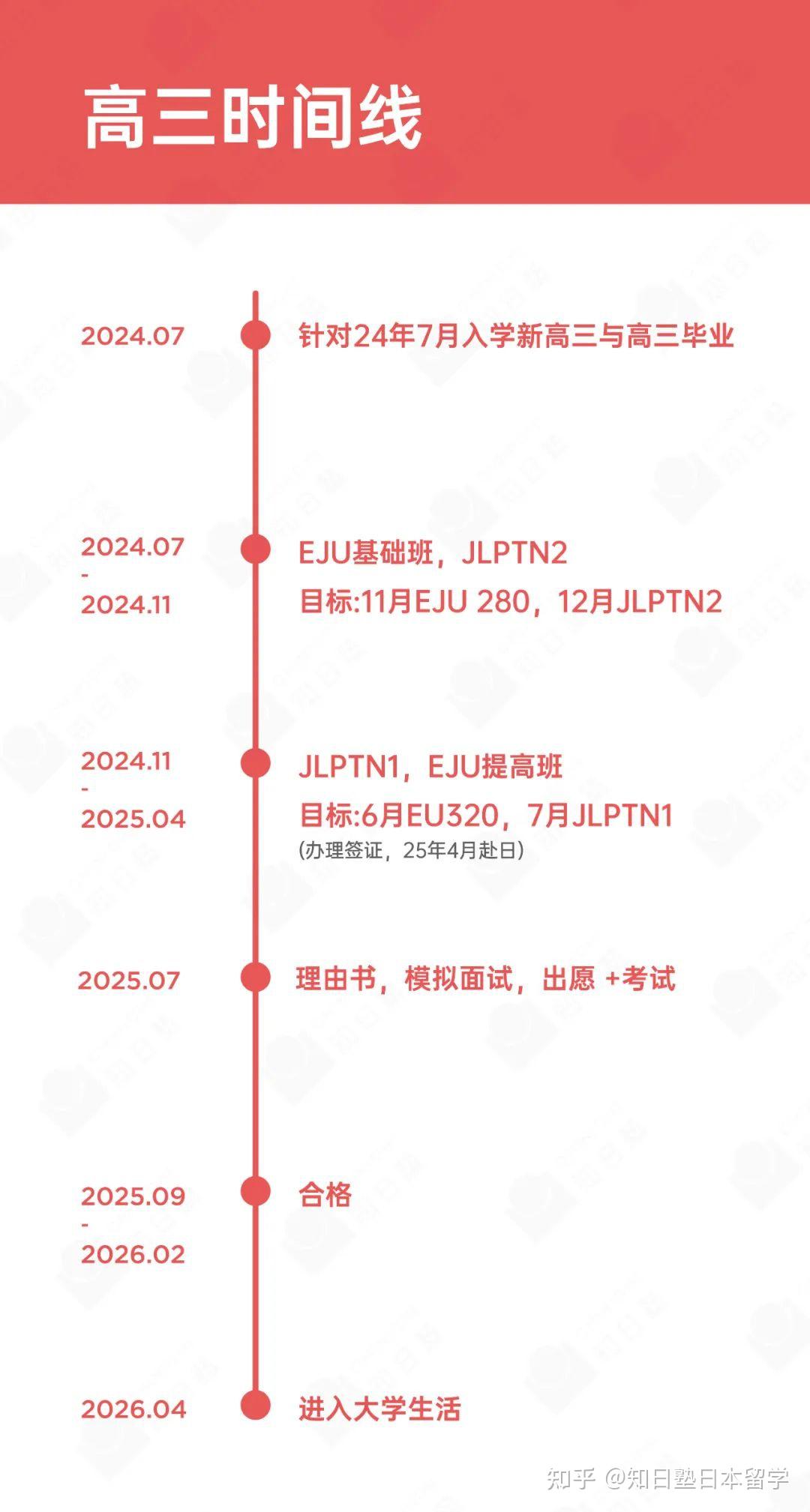只要提前做好规划,并且付出努力的话,也能在高三毕业后合格日本院校的。如果说实在来不及话,也可以在高三毕业后再备考一年冲刺日本的TOP级院校!
