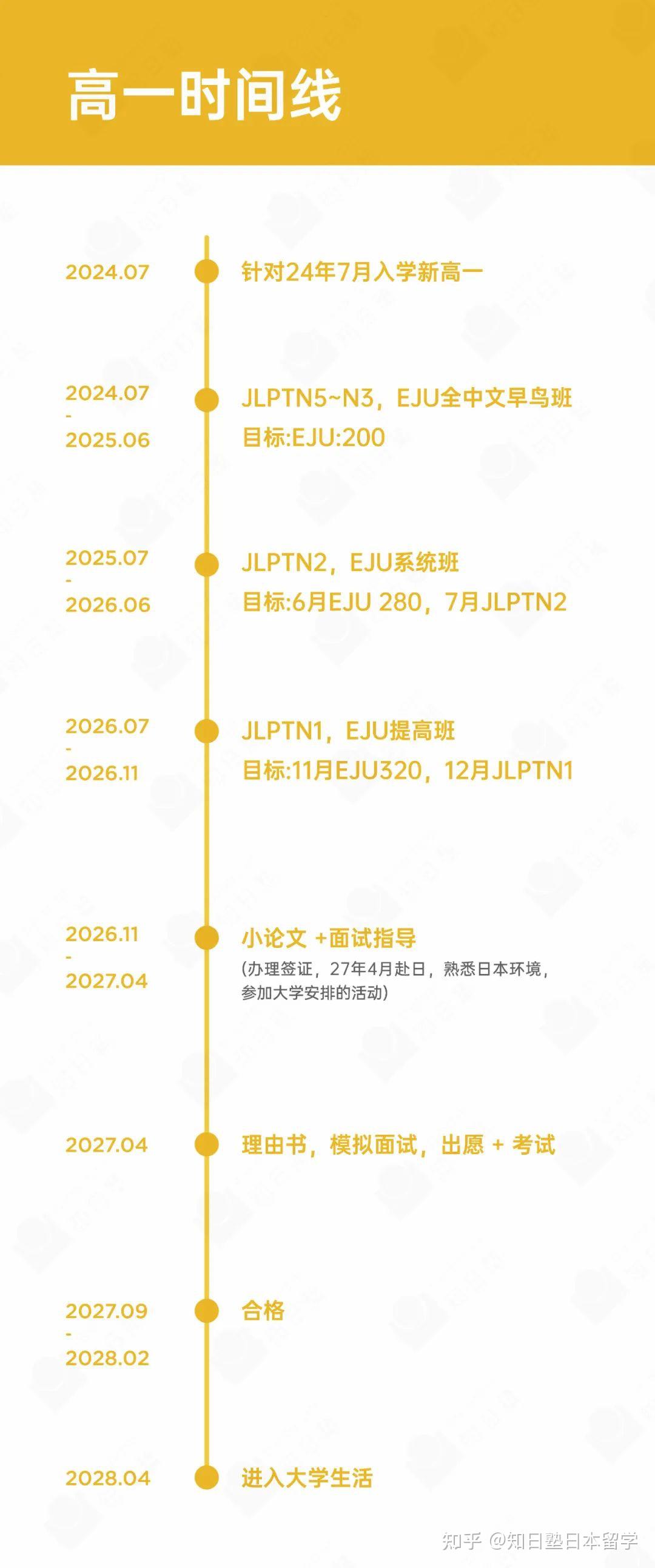 小知老师为了帮助各位高中生更好地规划赴日留学之路,我们为处于高一、高二、高三及毕业后,这三个不同阶段的考生制定了详细的日本本科升学规划时间线!快来对号入座,提早规划你的日本留学,减轻学习压力,找到自己的无限可能性,也许就是为自己开辟一条通向国际化视野的崭新道路!