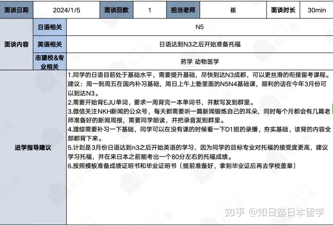 月度面谈与升学规划
