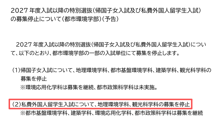 💡东京都立大学【都市环境学部】变更事项