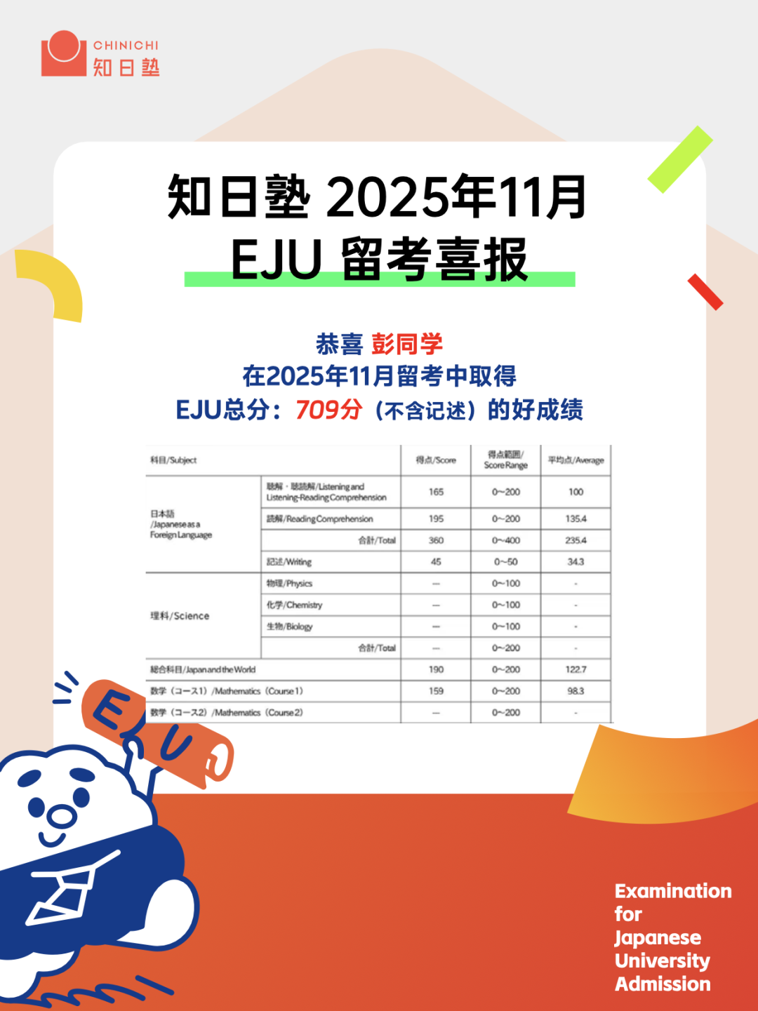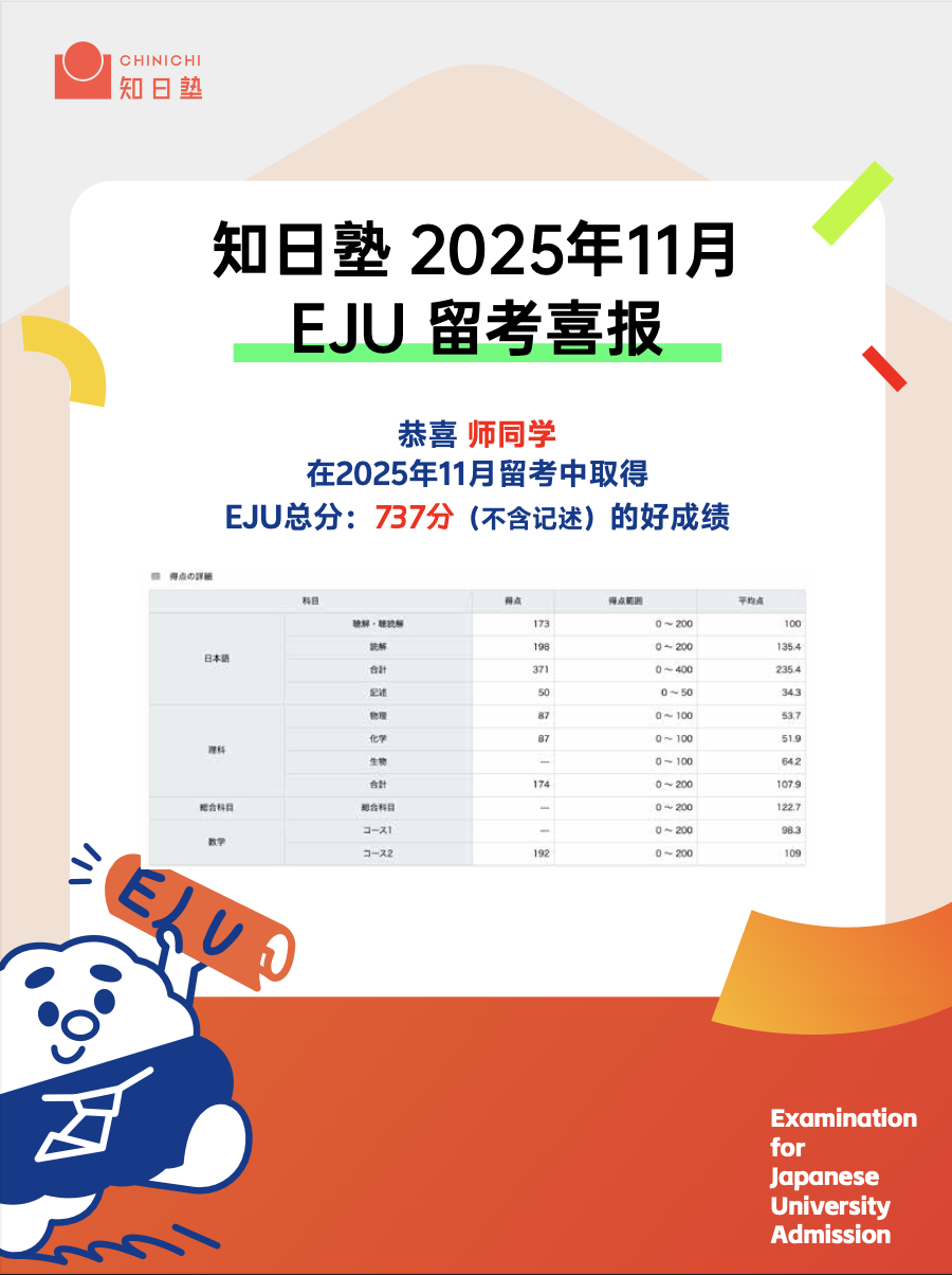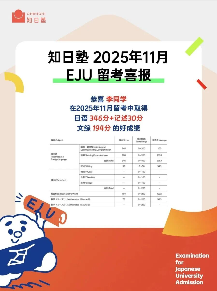 知日塾2025年11月EJU留考部分喜报