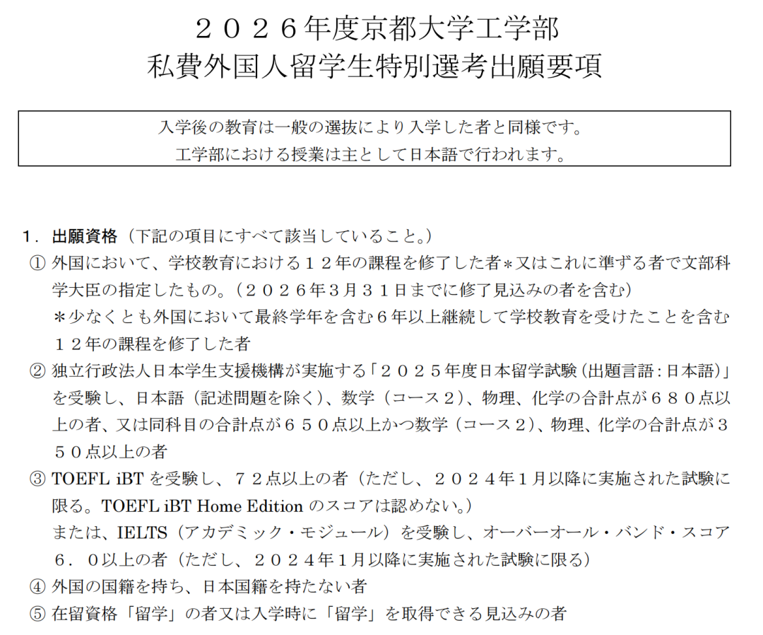 需提交日本留学考试(EJU)成绩,文科类重点考察“综合科目+数学Ⅰ”,理工科类重点考察“数学Ⅱ+物理/化学/生物”,总分通常要求达到680分以上(满分800分)如果想要冲刺顶尖院校则需要力争 EJU 总分达到不含记述720分以上。