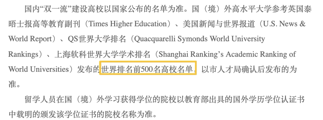 这一政策也给计划留学的同学提了醒,选校前务必核查目标院校的排名资质,避免因院校排名不达标错失落户优势。