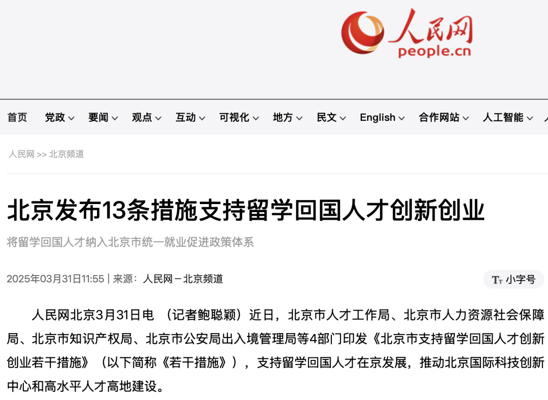 不止上海,北京、广州、深圳等一线城市也纷纷出台针对性政策,全方位吸引留学生归国发展,覆盖落户、住房、补贴、创业等多个维度。
