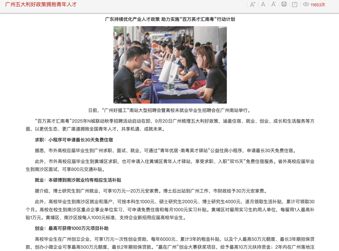 除市级福利外,广州各区还推出差异化留学生扶持政策:在南沙区就业的留学生,可按本科生1000元/月、硕士2000元/月、博士4000元/月的标准,连续领取30个月生活补贴,创业留学生可享受最高100万元项目补助。