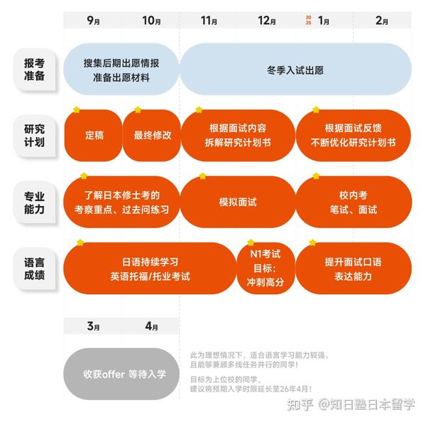这三项能力的基础都比较薄弱,甚至几乎都需要从0开始学起,那么小知建议将预期入学时限延后到26年4月! 【日语能力】全年持续学习,把握住7月、12月两回JLPT考试机会