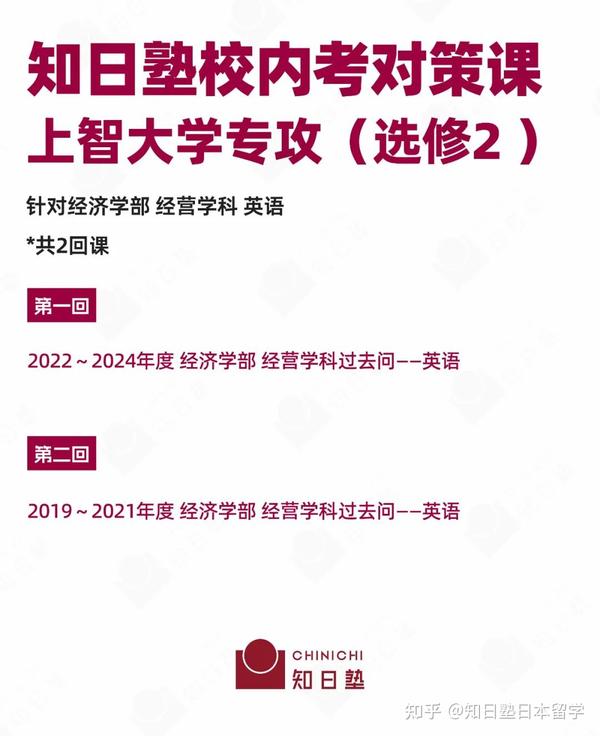 因此,关键在于通过有针对性的训练,掌握并提升应对考试的特定技巧。 知日塾上智大学校内考专项对策课来帮你!在考前进行专项提升,实现更有效、更有针对性的备考!