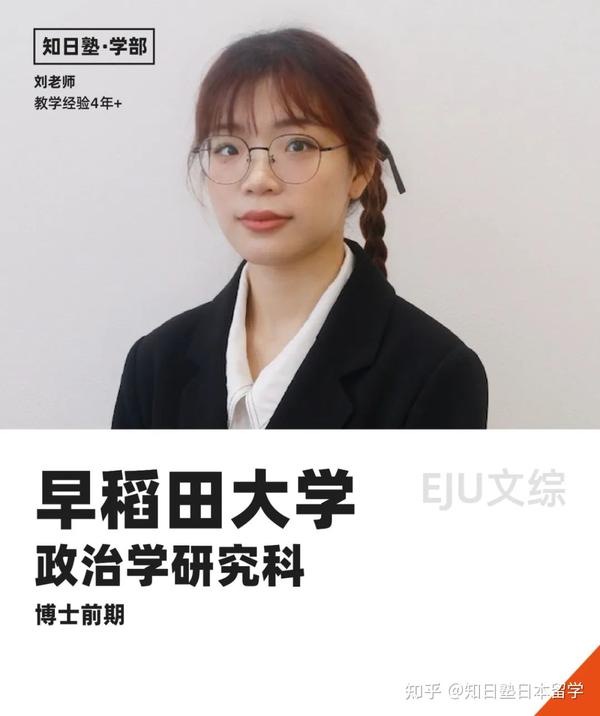 刘老师学部毕业于上智大学新闻学,后考入早稻田大学政治学研究科新闻学深造。刘老师日本语能力考试N1级曾获得170+,同时也是留考文综满分获得者。刘老师语言学校就读期间获得JASSO奖学金,学士就读期间分别获得JASSO奖学金、上智大学外国人留学生奖学金,就职期间分别斩获日本IT名企TIS、日立システムズ内定。