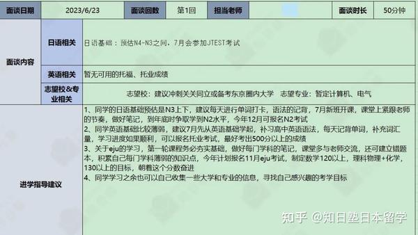 月度面谈与升学规划