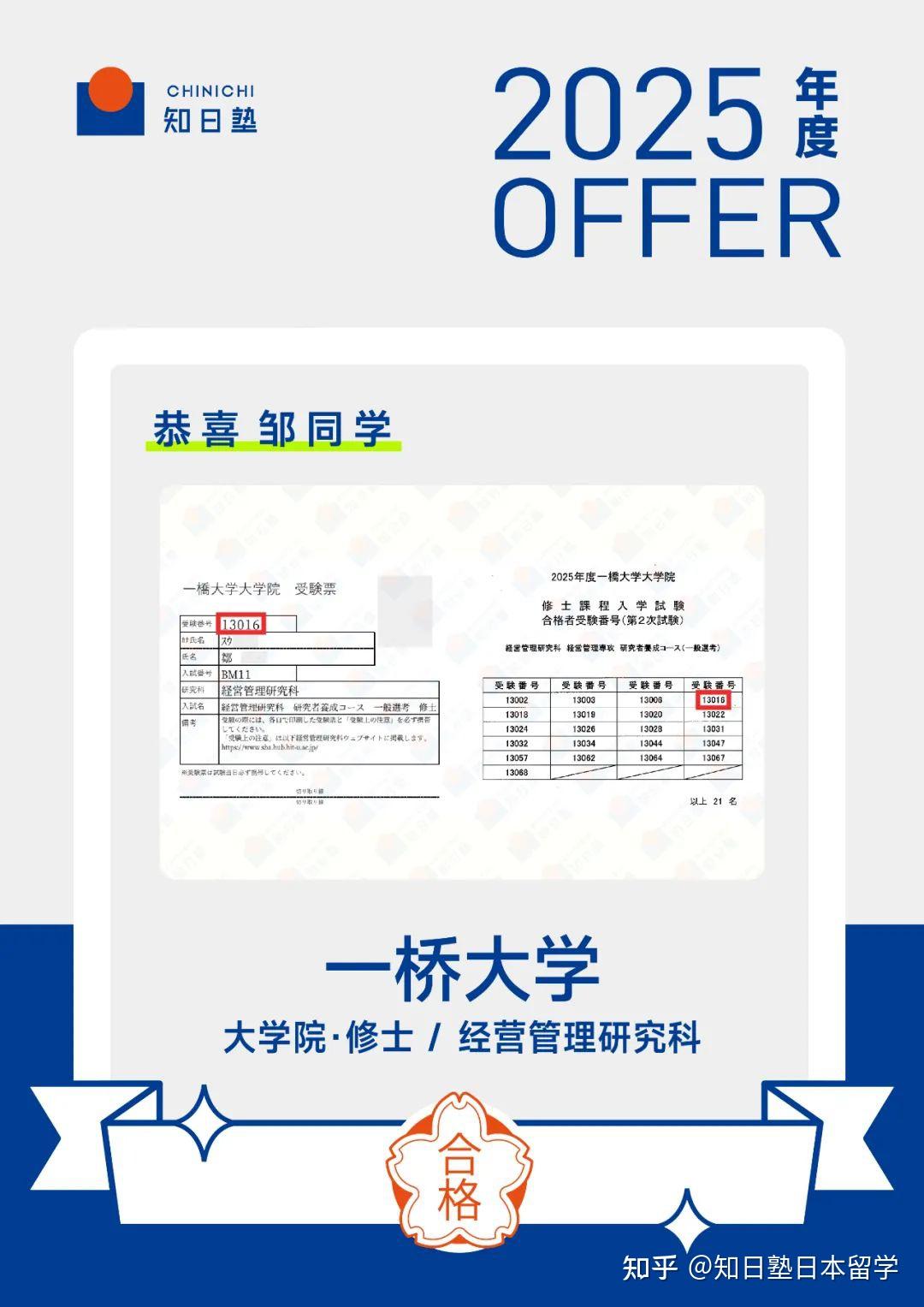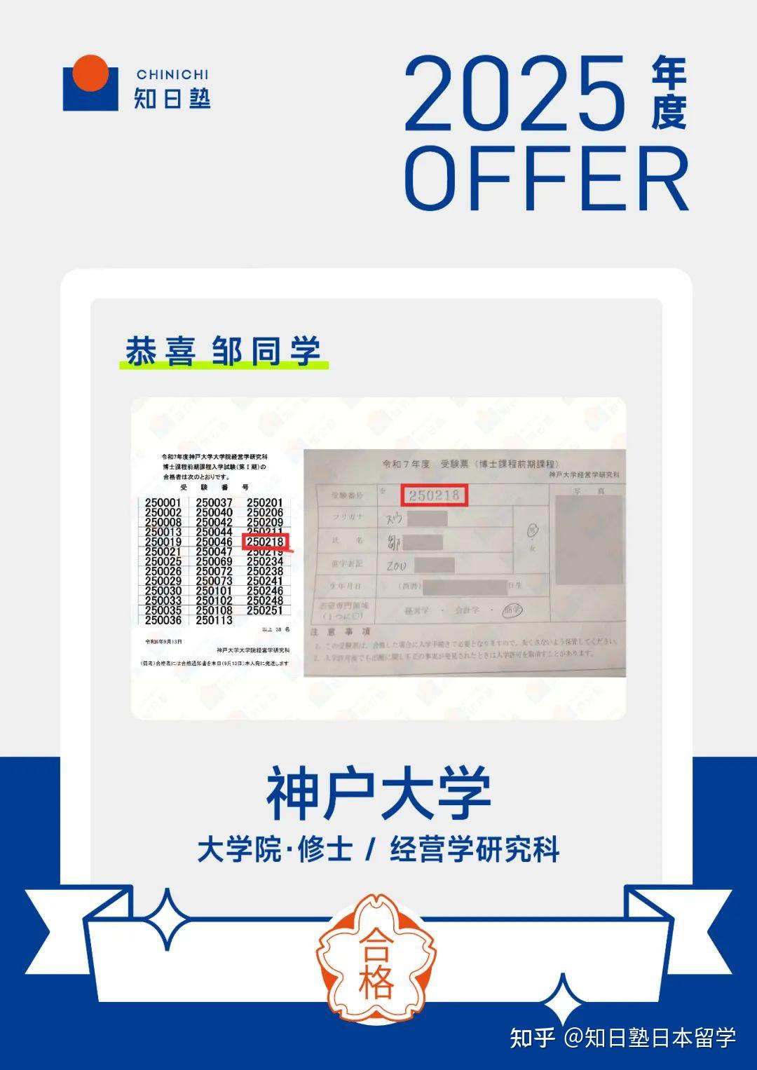 首先,祝贺邹同学同时合格一桥大学和神户大学!这样的优异成绩不仅是你的能力的体现,更是你日复一日努力的回报。