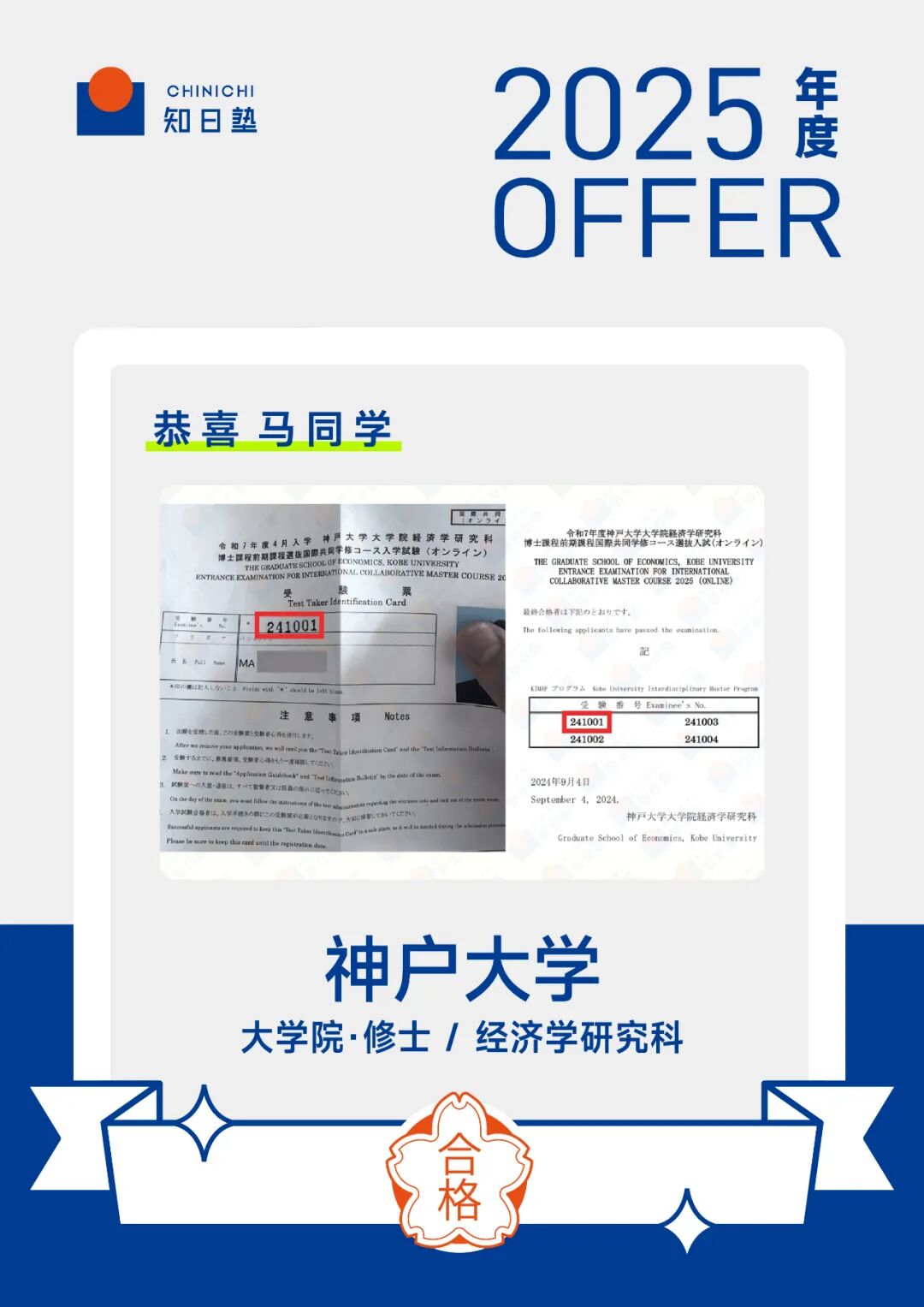 一开始,我并没有非得上某一所特定学校的执念,但心里还是会设定了一个底线——报考不低于我本科院校的学校。因为我的本科是211院校,我不希望选择的学校低于这个标准,这样可以能确保自己未来无论是留在日本还是回国,都能拥有一个较高的认可度。因此,我将神户大学作为保底校,同时挑战东京大学,中间则选择了大阪大学作为备选。这些大学的入学考试都包括书面审查和线上面试。值得注意的是,这几所学校仅需要书面审查和面试,在备考过程中,除了书面材料本身很要紧以外,信息收集能力同样至关重要。还有就是,日本很多大学院设置非常细致,许多适合自己的教授或课程可能并不在经济学研究科中,例如,我了解到神户大学经济学研究科的英语课程今年有四人报考且全部合格,所以在报考前,应先明确自己的优势,并据此筛选出合适的大学院。因为很多人可能并不了解神户大学的关于这个专业的相关课程,或者也不太清楚经济学专业的学生是也有申请申请公共政策相关大学院资格的。